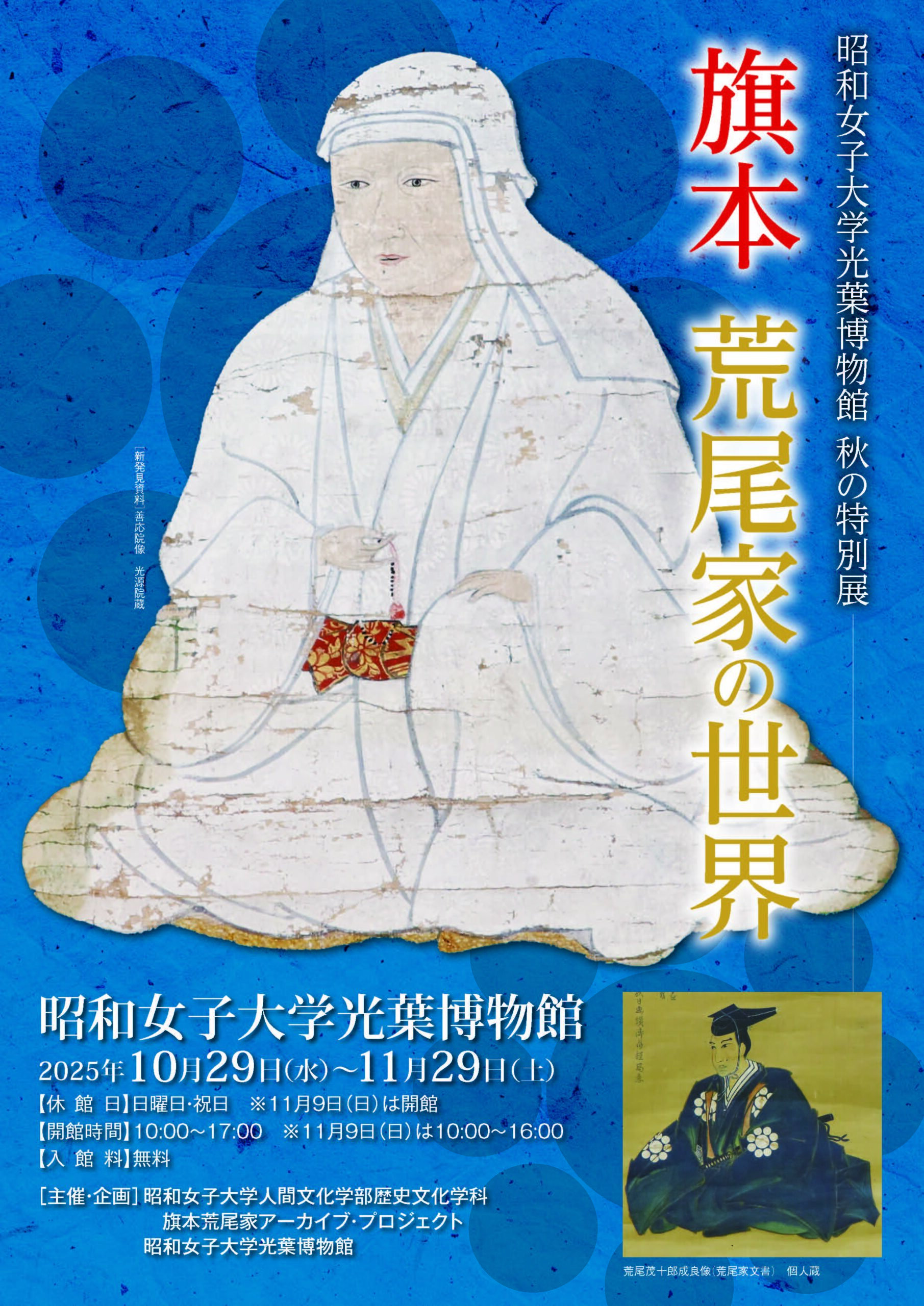 昭和女子大学光葉博物館『旗本荒尾家の世界』 2025/10/29 昭和女子大学光葉博物館『旗本荒尾家の世界』 貸出作品池田恒興肖像画(写真提供)会期2025年10月29日~2025年11月29日休館日日曜日、祝日会場昭和女子大学光葉博物館展覧会特別展「旗本荒尾家の世界」